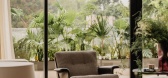 休闲区北向是庭院美景,庭院中的四季光影与自然景致被温柔地纳入室内。天光如水倾泻,悄然漫溢开来,在柔软的沙发上投下柔和的明暗层...