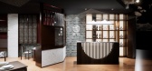 大堂洽谈区以张大千“松下观瀑图”为历史文化背景,渲染静谧洽谈空间,并用改良方式运用旧木结合工艺把底蕴文化延伸到现代,是一种改良方式体现。整体空间以咖色为主,以蓝色...