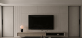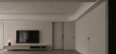 ...内」的需求。穿过玄关後,动线缓缓展开,我们以简洁的弧形天花描绘出空间中最重要的一条线,使视觉自然延伸并被引导。 电视柜与厨房收纳柜则以半家具的设计呈现,让原有的结构线条得以裸露,并在空间中自由流动。同...