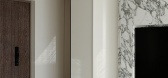 ...手工漆、柔和的饰面为主要材质,加上几处或是线条或是弧形的立面手法,整体保持沉稳的中性色调,却又不失趣味性。