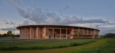 ...,将居住、工作坊与公共空间整合于同一建筑姿态之中,强化协作与共处的精神。椭圆形界定出一个内向的圆形庭院,形成一处绿意环绕、免受荒原强风侵扰的公共空间。庭院中央设置了一张大型木质长椅,成为自然的聚集点,...