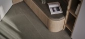 ,主要建材:橡木钢刷实木贴皮、法国灰大理石、铁件烤漆、砾石纹磁砖、超耐磨木地板、LIEBHERR崁入式冰箱、全室PM2.5空气交换机。