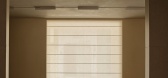 倾斜的上部空间面向垂直面板和竹板。 通过这些垂直板条过滤,...