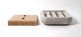 DanielBecker的45系列藏品包括一个凳子和一个柜子,这两种结构都是由用来支持用叉车移动的货物的扁平木结构制成的。