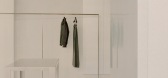 店面外部采用尽量少的元素表达,深色拉丝铝板定义出开口范围,玻璃平移门类似日本传统隔断门的形式,开启之后可以得到一个非常开放的店面入口。