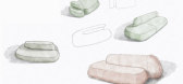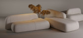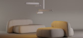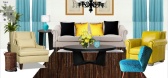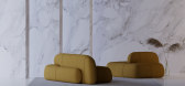 这组起居空间的拼图将了Gaetano Pesce很多经典作品融合了在一起,三人位主沙发,前面摆放茶几,两边各配一张休闲椅节省空间,这样摆放设计轻松、舒适同时也很实用,用美间的替换功能...