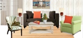 这组拼图排版搭配,讲究对称式构造,注重布局的层次分明。冰蓝色多人沙发高贵优雅坐落于客厅中央,两张橘色皮质沙发对称,放置于客厅两侧。茶几妥妥的安放于中心位置...