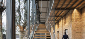 进入室内后,胶合木梁间的方格在图书馆天花板上呈现出一种动态结构图案,并将所有空间联系在一起。极具几何感的韵律可帮助吸引参观者进入图书馆,同时营造出令人愉悦的动感和活力感。细长...