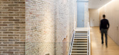 ...部位为室、内外之间保持通透而将这种密实感转化为多孔方格墙。同样的砖墙铺在入口和花园,入口广场的长凳,还有藤架下来界定花园和临近建筑的院子。另外,花园的边界采用不同高度配置的方格墙,重新定义和表达了花园...