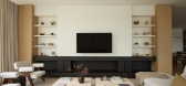 ...和天花板轻轻粉刷,家具的边缘轻轻地倒圆,向日本寺庙建筑中的木柱致敬。 “我们保持了设计的流畅性和连续性,并隐藏了通常在家中发现的突出物,”Terui 说。 “然后我们使用间接照明和纹理表面来抑制空间中的任何尖角...