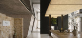 以木调暖向,材料本身的特质传达寂静温润的空间基调 ,以几何视觉,凸显空间的结构感与趣味性,构成展厅外立面的初印象。而半透隔断的遮挡引人入境,勾起向内探索的好奇,使得...