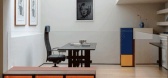 餐厅空间以沉寂的色调搭配质朴的肌理,通过微水泥墙面与深色软装格调的设置,保留整体的干净与简单。