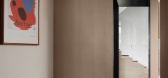 入口处至公共区域的墙壁转角以平缓的曲面营造,打破了传统直角墙壁所构筑的空间局限性,同时也模糊了空间的纵深度。大面积浅色木饰面柔和依附于起伏并延展向远处,使氛围柔和而有温度。
