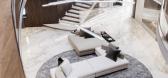 书房构建的是一个既可独处也能容纳交流的空间。极致简约的Menu沙发充满灵性之美,细致的木质构造与现代优雅的造型设计宛若轻盈极致的艺术品,与金属大理石落地灯组成一个巧妙的艺术构设。