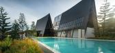 ...,不刻意营造违背自然环境的空间。结合场地原有山势,林间开阔平坦区域作为迎宾、集散场地;户外活动区利用林下空间,形成林荫下的舒适环境;地势低洼区打造水面,冬季形成天然的活动冰场;客房建筑置于半山腰,落地...