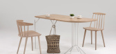 ...个定制的桌子集合“Twigi”。该形式模仿乡村想法使用轻树枝支持木材顶部使用。“Twigs”在腿的末端伸出树枝,成为袋子的角钩。方形和象限形状允许在树下灵活分组。
