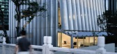 ...同时指引着视线和行动的方向。可以作为表演舞台的宽大楼梯通向HotelHotel大厅和酒吧。楼梯上的木材从地面向上依次叠放,带来一种厚重感。木材竖直悬空架设构成墙壁,并继续遍布于天花板。悬浮的木材过滤掉外部光源,将...
