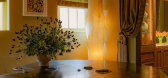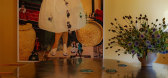 ...动静结合,虚实相间。步入展厅,映入眼帘的是酒红色的橱柜与艺术装置墙,圆形的球体悬于空中,浮于微水泥墙面,诠释着丰富的空间语境,时而动,时而静,理性虚构,细腻动人。