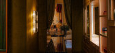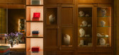 ...照亮了维多利亚时代的墙板,映衬着镀金装饰艺术风格的橱柜,并照亮了摆放着 Trove 盒子的非传统细木工,盒子的颜色与盒子内的珍贵宝石颜色相同。第二个房间则营造出一种被包裹在盒子里的感觉。黄绿色天鹅绒和波纹布沿...