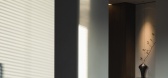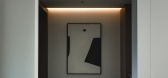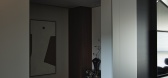 推开门,金属质感层板与黑色石材构筑的玄关如墨色...
