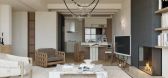 ...其中心部分被储藏柜包围,为了隐蔽处于其中的小地窖和洗衣房。该设计旨在保证室内外的功能连续性。两个庭院和一个中庭花园使室内外空间相连接。住宅旁的泳池倒映着周边村落的美景。