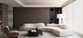 客厅深色沙发增加成熟感搭配简约茶几和落地灯使用大量高级灰色调使得整体氛围变得更为现代时尚