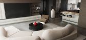 ,Scavolini的Formalia厨房岛设有一个高大的方形工作台,可将就餐区提升到工...