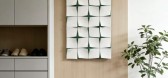 ...手,清爽中带着点活泼。住在这个公寓里的人,想必有颗温柔的心。柜子旁边的墙壁上安装了一组可调整的柜子,地板是人字形的镶嵌木条,让整体环境处于一种温和居家的气氛中。