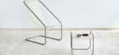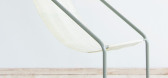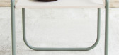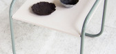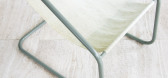 椅子和桌子的支撑是一个简单的,弯曲的钢管框架,软灰色-绿色。