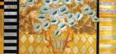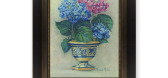 ...长出两朵明艳郁金香,著名法国画家贝尔纳 · 布菲的石版画《紫色花束》置于斗柜最高处,与之相配的花篮装饰摆件恰到好处地生动了画作的生命力。