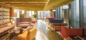 落地窗围绕的会议室,不拘以往会议室一贯的严肃风格,随意但有条理的现代布艺沙发排落在会议室的周边,时而以明黄、深蓝、深紫点缀其中,凸显轻松愉悦的氛围,让人倍感舒适。