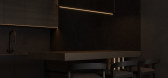 在这个项目中,我们再次决定转向极简主义,但这次转向黑暗,我们以青铜的形式添加了明亮的特色——这是对项目建筑的重新审视。
