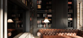 ,阴暗的色调一直延伸到室内设计中,彰显...