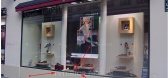 ...被分割成不同大小并融合了大门的设计,同时结合不同的玻璃质感来丰富橱窗展示的层次。