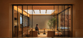 ...很坚决:拆除原有天井的封闭顶面,以一个轻盈的钢结构玻璃采光顶取而代之。这一举动,让建筑拥有了一个会呼吸的“生态中庭”。阳光、风雨、落叶自此成为空间的常客,光影随时间在微水泥墙面与莱姆石地面上游走。