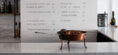...两种厨房模型的起点都是大理石台面,第一个特点是白色卡拉拉和黑色 Marquina 大理石的惊人组合,垂直排列以创造独特的条纹效果,让人想起罗马式和哥特式建筑。
