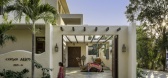 ...面”之间的区别。 另一方面,选择对比鲜明的黑色实心石雕,带有茂物荷兰殖民建筑的细微差别,偏爱石雕材料,并作为别墅自然背景的过渡。