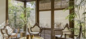 ...与庭院地面都是旧物利用铺设老石板,同时穿插一些立体石雕,打破石板通铺的沉闷。