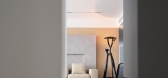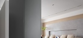 工字型过道的中间,一面壁龛搁置禅意摆件,一束灯光的照射下突显出墙体的纹理感;一面扶手镂空几何图案,在连续的、垂直而上的线状结构中形成空间的视觉亮点。