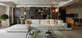 ...通性。餐厅是优雅的白金色调,现代感十足,搭配深色的科定木饰面,孔雀绿的餐椅,给整个空间增添一丝时尚活力。半岛式橱柜台,是安吉尔白大理石和锻打铜板的完美结合,既可作为西餐的操作台,又可以作为酒吧台,符合...