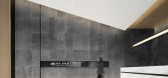 克制的材质使用和通顶的隐形门让走廊维持着外在的简约,格栅的肌理和大理石的纹路...