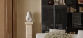 地面下沉铺设木炭黑莱姆石手工小砖,粗粝质感与自然肌理艺术漆、温润洞石交织共鸣。在光影映照下,材质对话营造出纯粹的过渡仪式,成为进入温馨生活...