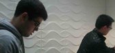 ...吧台的台面是黄铜制成的,台身装饰有蓝色的瓷砖。充满立体感的壁画贴纸创造出意乱神迷的空间氛围。设计师设计的桌子反射着壁纸的图案,而椅子被设计成鸟笼的形状,给这个满是几何形态的室内增加了一点活泼的气氛。