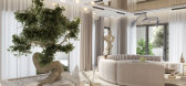 建筑概念体现了现代精致和有机设计元素的融合。该住宅被设想为一个避难所,干净的线条和极...