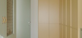...风格中,略带暖感的中性色几乎是“必备条件”,在这个精致的公寓中也不例外。玄关比较窄小,为了不造成更多的视觉负担,设计师尽量统一空间的色彩,定制了和墙面同色的隐形储物柜,入户门也涂刷成了一致的颜色,通过...
