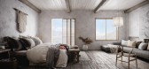 入室,即可沉浸于素色材质给予人的沉静力量。空间如蝉翼的轻柔感,归结于亚麻涂料的肌理效果。