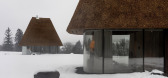 ...开,大面积的落地玻璃窗向森林敞开。从入口进入,一条线性的门廊引向略微下沉的客厅,其空间由板面切割而出。这个温暖的空间由壁炉点缀,并以挑空双层高度增强空间的戏剧性,一道长长的垂直窗帘更突显了体量的竖向延...