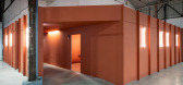 在入口处,一个橙色的物体象征着仓库对面的俱乐部入口,创...
