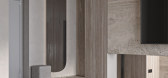 ...个弯曲的柜台从墙上柔和地出现。木材底座上没有手柄,而是切割出小凹槽,打造出我们喜爱的时尚、现代的外观。温暖的木材和抛光的大理石表面之间的微妙并列为日常活动创造了一个特殊的时刻——洗手。
