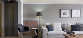 硬装基础用了许多弧形造型,没有锋利的转折面,轻盈的异形茶几与有重...